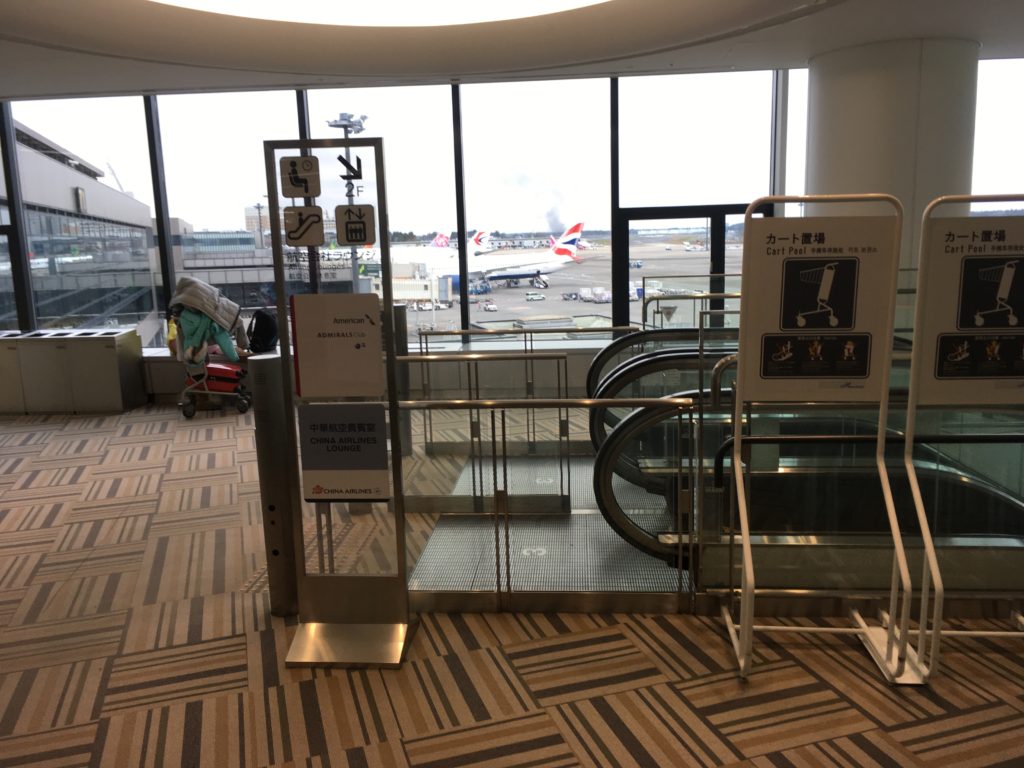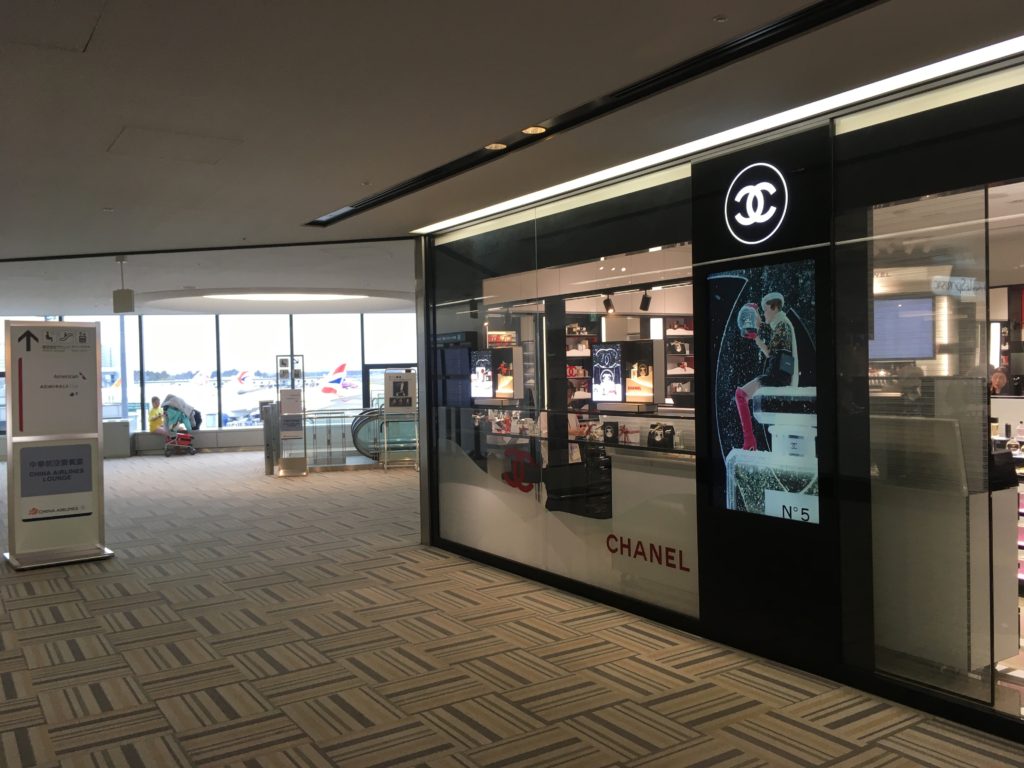 チェックイン後、空港のセキュリティを抜けて、シャネルの店の横のエスカレータで下に降りチャイナエアラインのラウンジで、先ほどもらったラウンジのチケットを出して少し休憩です。