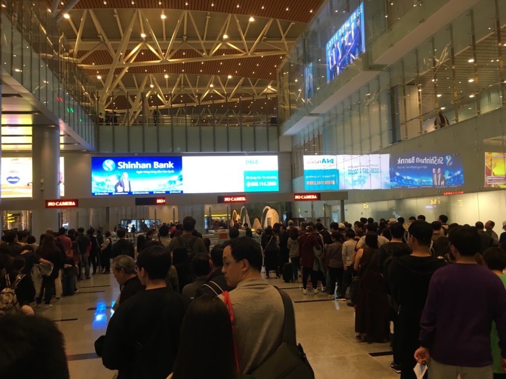 ダナンの入国手続きは混んでいて1つの窓口の列に30人〜くらいいました。