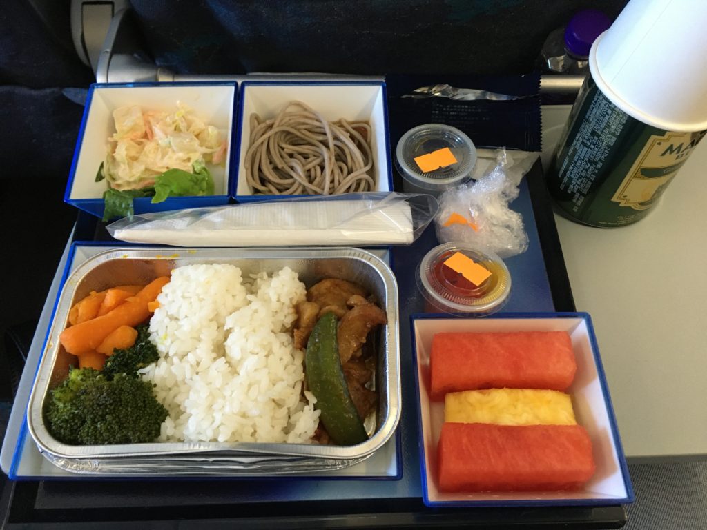 最近はどこの航空会社もエコノミークラスの食事はこのくらいのクオリティかなと思っています。食事を良くしてもらうよりもチケット安い方が優先だと思うので、食事はこれで問題ありませんw。