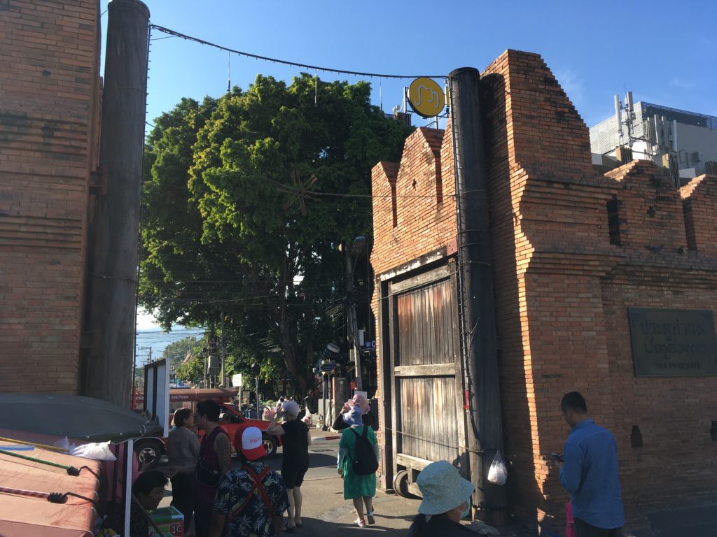 ここは超有名な観光地です。城壁で囲まれた都市だった時の門です。チェンマイ旧市街の東門です。この門は車が通り抜けない門です。(他の門はおそらく車が通り抜けられる構造になっているかと思います)