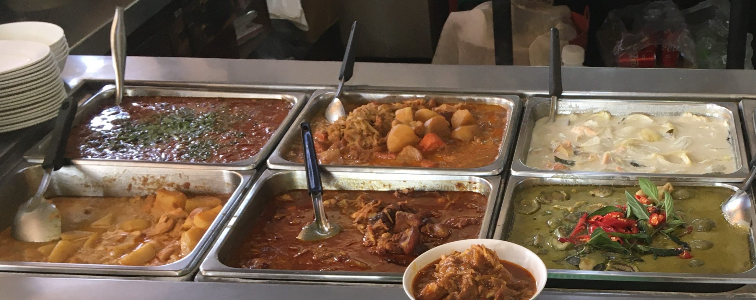 カレー70バーツ、ライス10バーツ、水(ペットボトル)10バーツ計90バーツ(300円くらい)でした。
