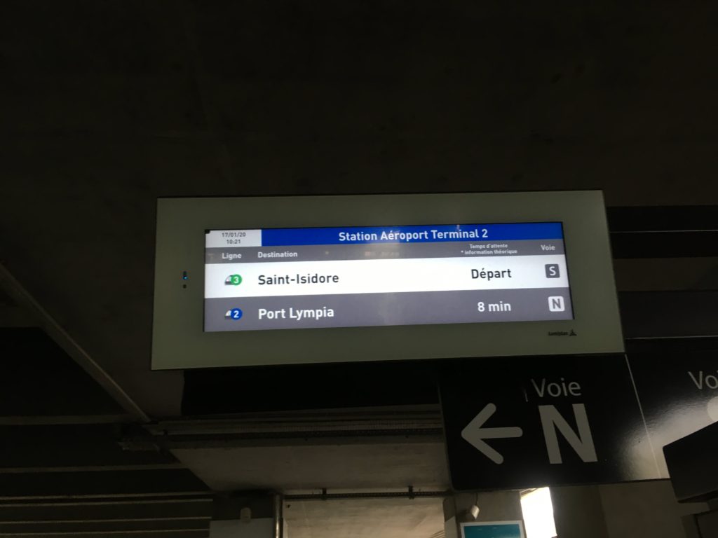 「Tramway」と書いてあるトラムの絵の案内の方へ進めば駅はすぐ見つかると思います。(以下は第1ターミナル・この出口を出てすぐ右側がトラムの駅です)