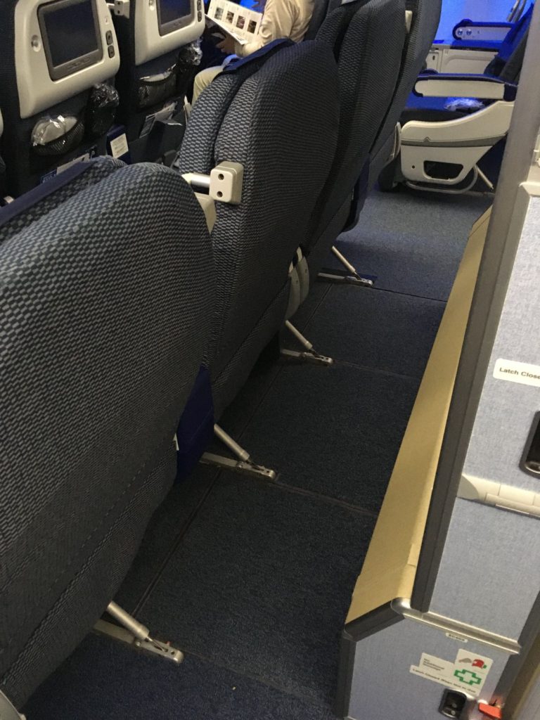 またエコノミークラスよりも リクライニングが倒せました。最後列の席でも後ろのスペースが確保されているので、充分リクライニングできます。(たしかここに荷物を置いてもよかったみたいです。要確認ですが。)