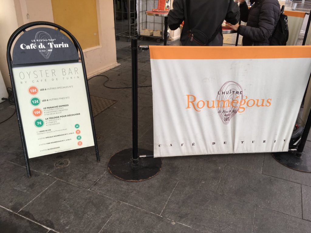 正面の黄色い建物に右端にオイスターバーがありました。試してないですがおいしそうでした。