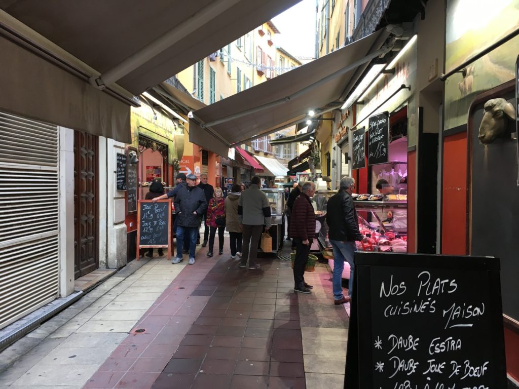 ニースの旧市街は車が走ることを想定していないような細い通りに建物がひしめき合って建っています。まさにヨーロッパの古い町並みな感じです。一方ここは住宅地でもあり地元の人の生活が見られ、地元の人が買い物をするような店と観光用の店が混ざっています。せっかく旅行に来たならその両方を楽しんでみたいですね。